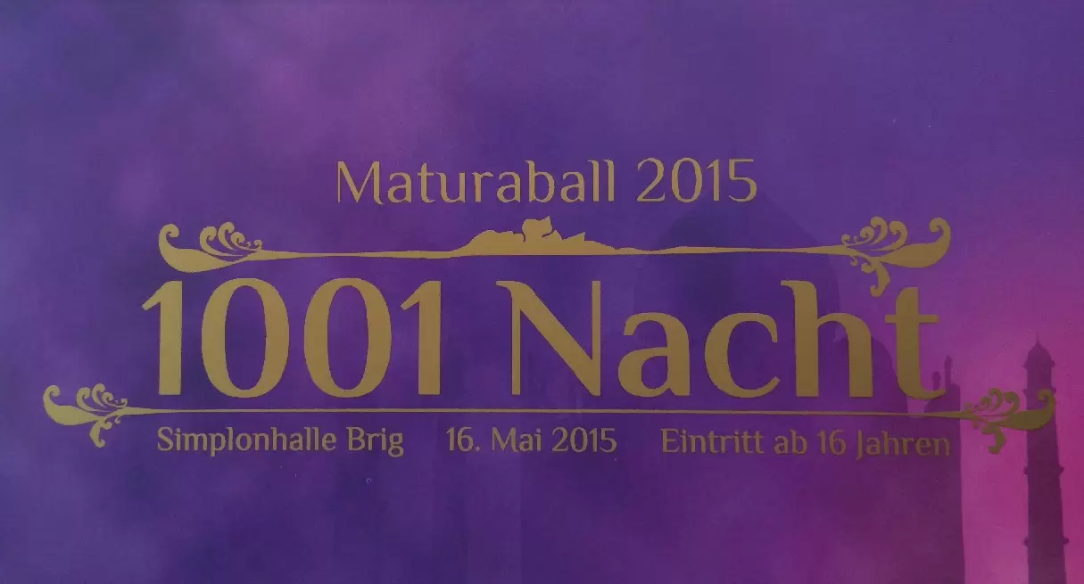 Die Maturandinnen und Maturanden werden am Samstag, 16.5.2015 von Fraben, Gerüchen und Klängen auf eine Reise ins Morgenland entführt. In der Simponhalle findet nämlich unter dem Motto "1001 Nacht" der traditionelle Maturaball statt, der dieses Jahr von der Klasse 4E organisiert wird.