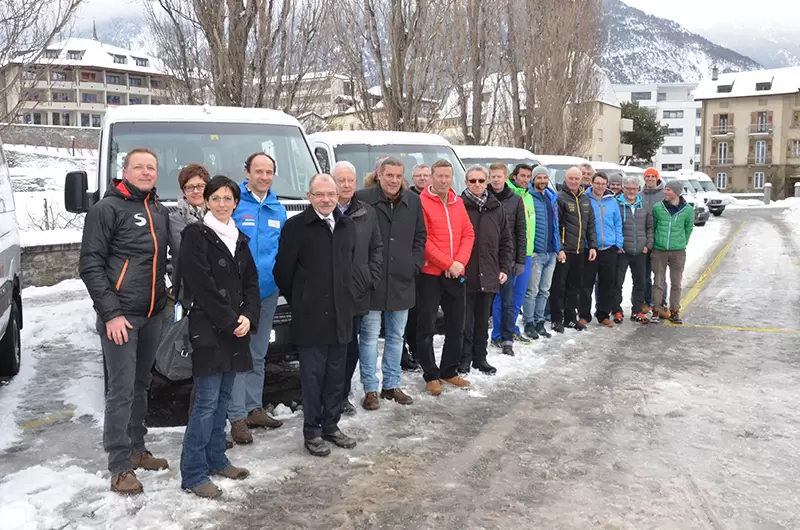 Im Beisein von Staatsrat Oskar Freysinger wurden am Freitag, 30.1.2015 dem NLZ West 9 neue Mercedes-Busse übergeben. Weitere 20 Fahrzeuge durfte Ski Valais in Empfang nehmen. Vom neuen Autopark werden in Zukunft auch viele Athletinnen und Athleten der Sportschule Kollegium Brig profitieren können.
