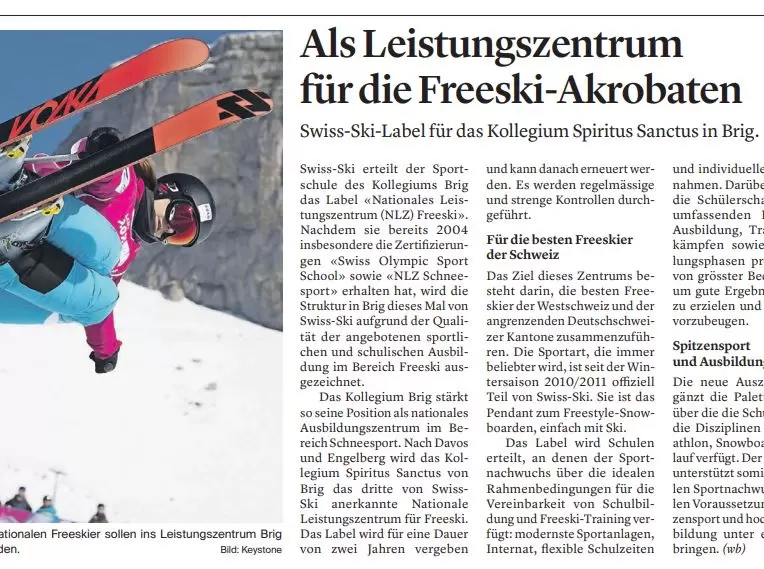 Swiss-Ski erteilt der Sportschule des Kollegiums Brig das Label «Nationales Leistungszentrum (NLZ) Freeski». [...]