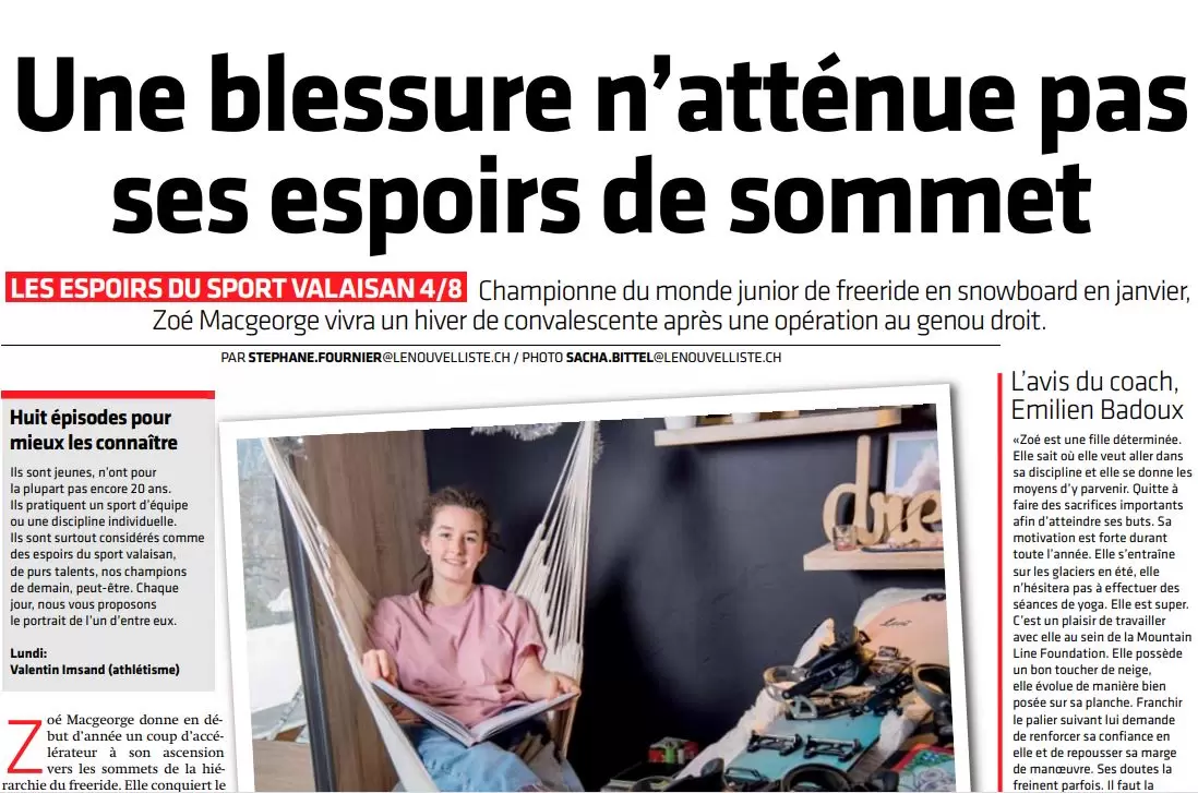 Championne du monde junior de freeride en snowboard en janvier, Zoé Macgeorge vivra un hiver de convalescente après une opération au genou droit. [...]