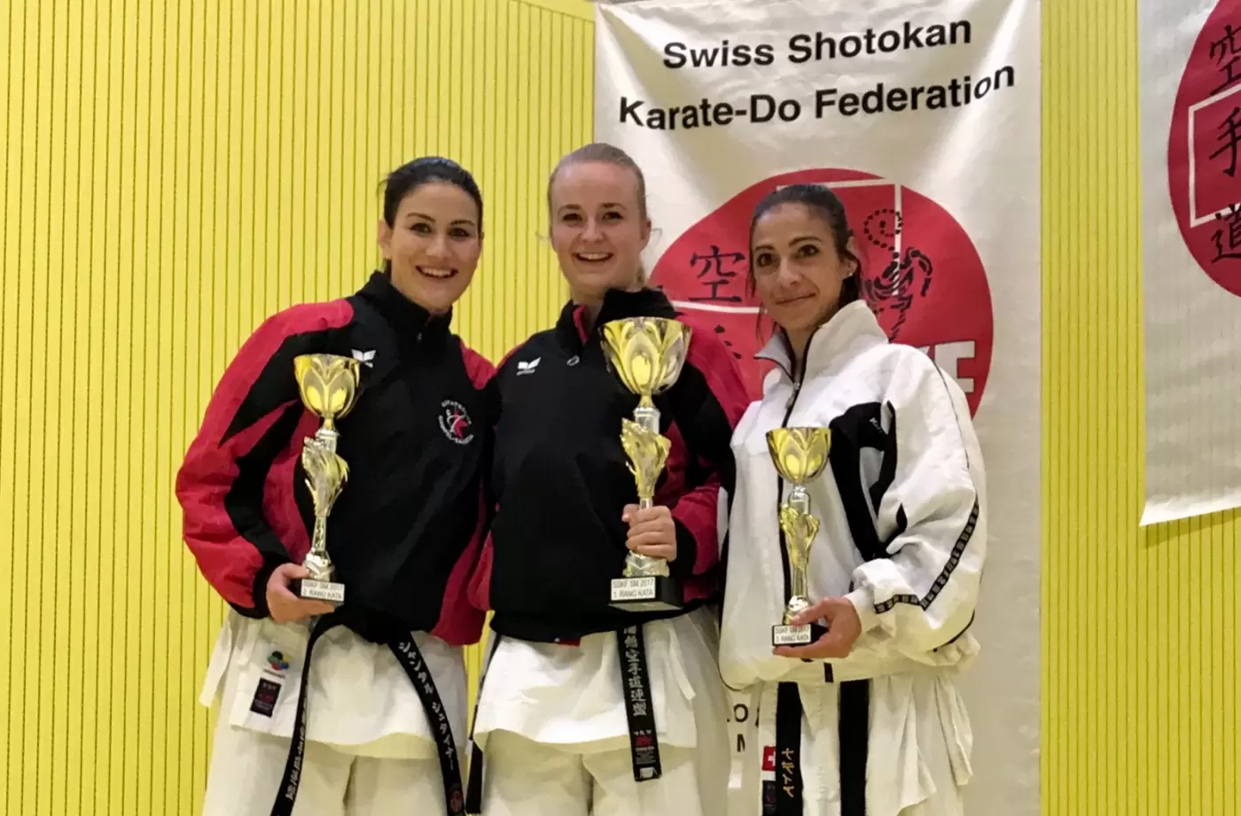 Zum Saisonende fand am vergangenen Wochenende im St.Gallischen Heerbrugg die Meisterschaft des Schweizerischen Shotokan Karate Verbandes statt. Chantal Steiner und Nathalie Schmidt (beides ehemalige Schülerinnen) überzeugten mit Top-Leistungen. In der Kategorie Kata Elite Damen setzte sich Nathalie Schmidt durch und siegte. Chantal Steiner wurde zweite und holte sich mit einem Doppelstart in Kumite Elite Damen zusätzlich einen dritten Platz.